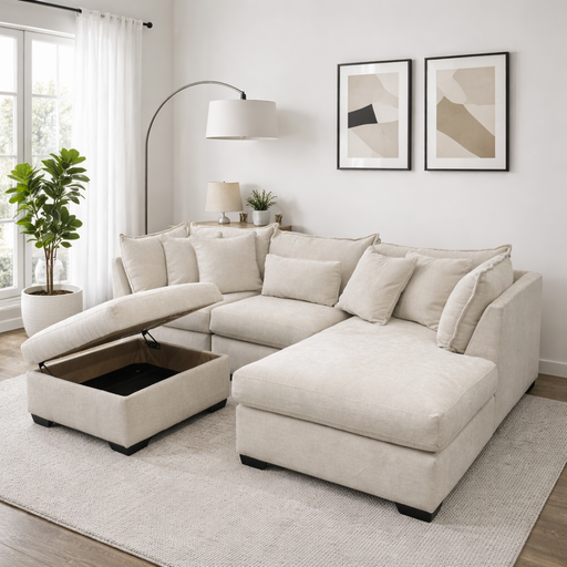 Avery 4-Piece Modular Sectional with Ottoman – Cream This sofa is brand new, arrives factory packaged, and includes a 1-year manufacturer warranty....