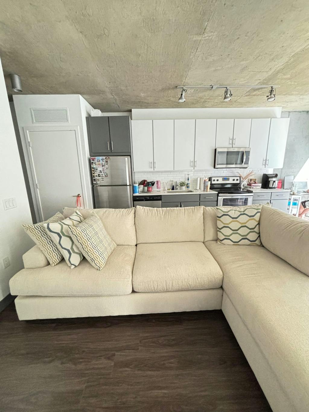 We offer sofa haul-away service exclusively for customers purchasing a new sofa or sectional from us. The cost is $35 per seat cushion. Please call (312) 252-9870 to pay for haul-away.