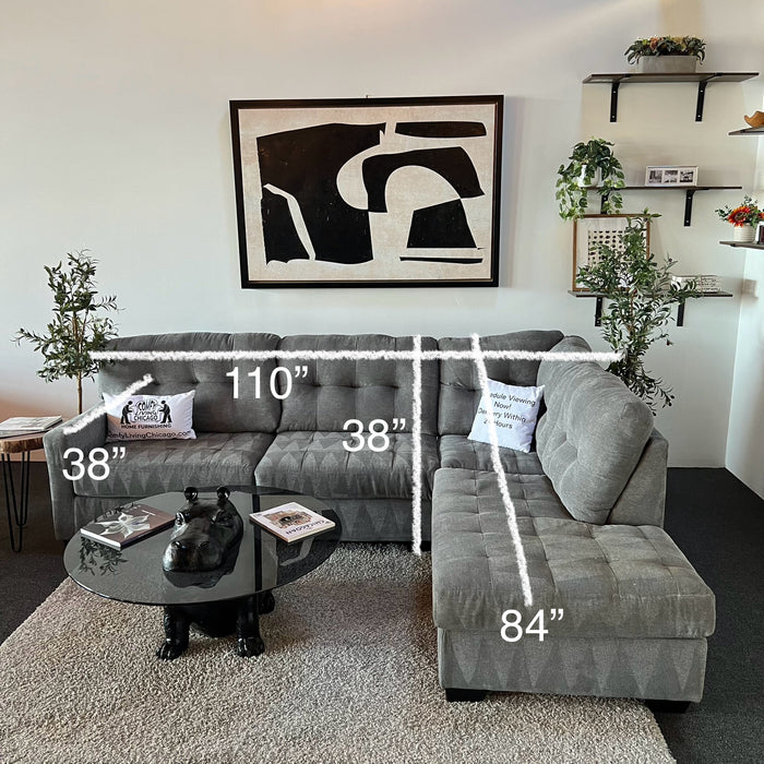 Gray Sectional Couch with Bumper Chaise