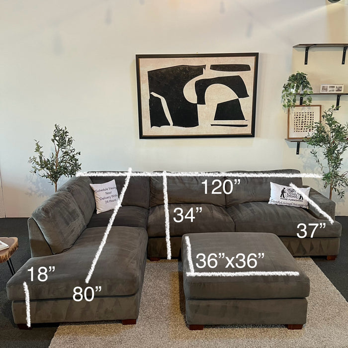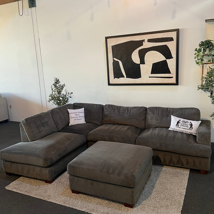 Thomasville Sectional Couch with Matching Ottoman in Gray